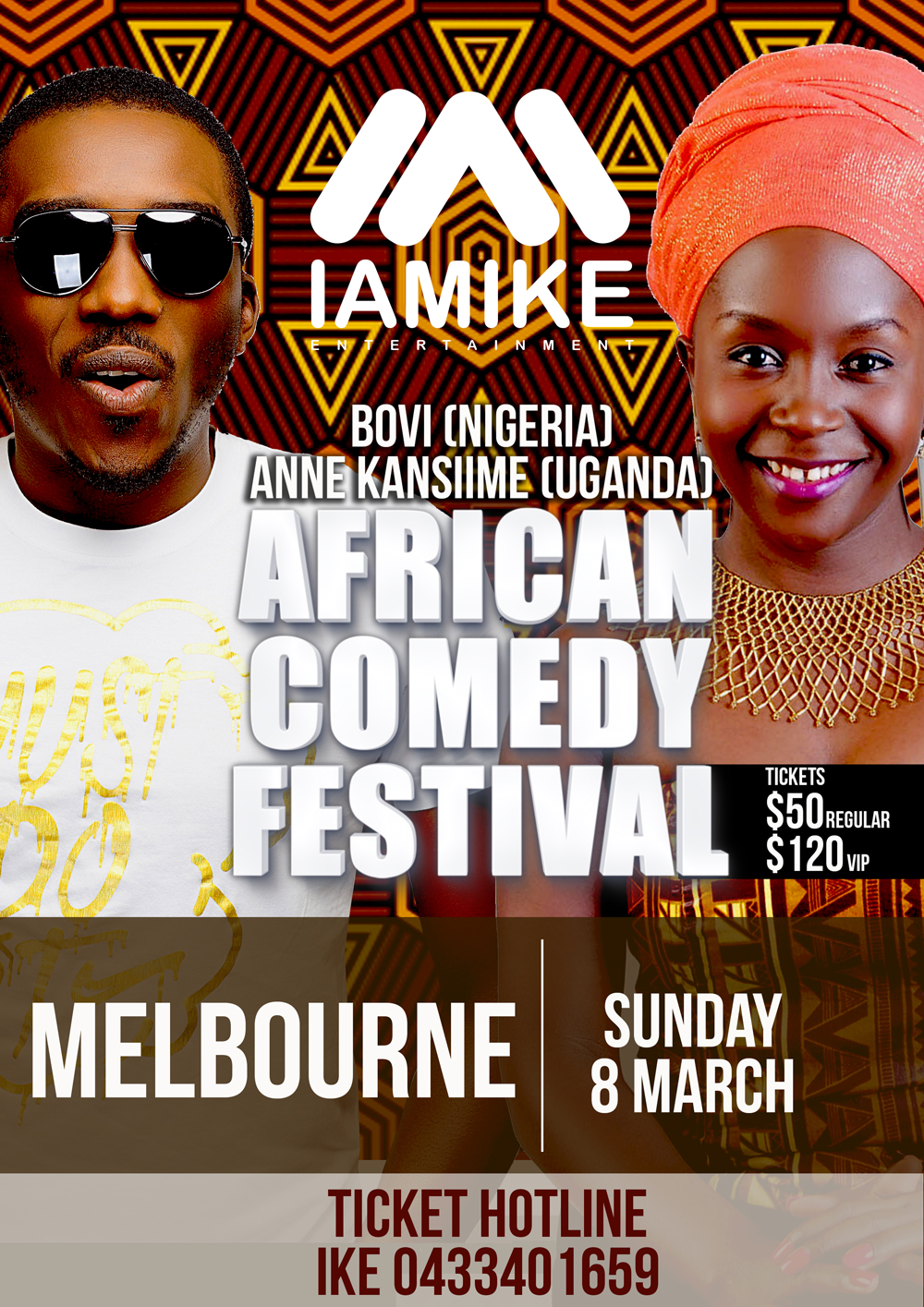 IAMIKE Entertainment are back with the African Comedy Festival, this time featuring Ugandan Comedienne Anne Kansiime and Nigerian Comedian BOVI.