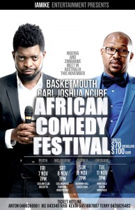 Nigeria and Zimbabwe meet in Australia for the African Comedy Festival Featuring Nigerian comedian BASKETMOUTH and Zimbabwean comedian CARL JOSHUA NCUBE CLICK HERE TO PURCHASE TICKETS