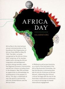 IDENTITY HISTORY UNITY - All Nations Parade The Africa Day Council NSW is pleased to announce the inaugural Africa Day NSW Celebrations and Nelson Mandela Tribute on May 31st 2014. This historic event is hosted to bring together our diverse and rich cultures celebrating our IDENTITY HISTORY UNITY. Africa Day is celebrated worldwide as the day we honor those that struggled tirelessly to create the great African Union we know today. As African Australians, we have the unique opportunity to…